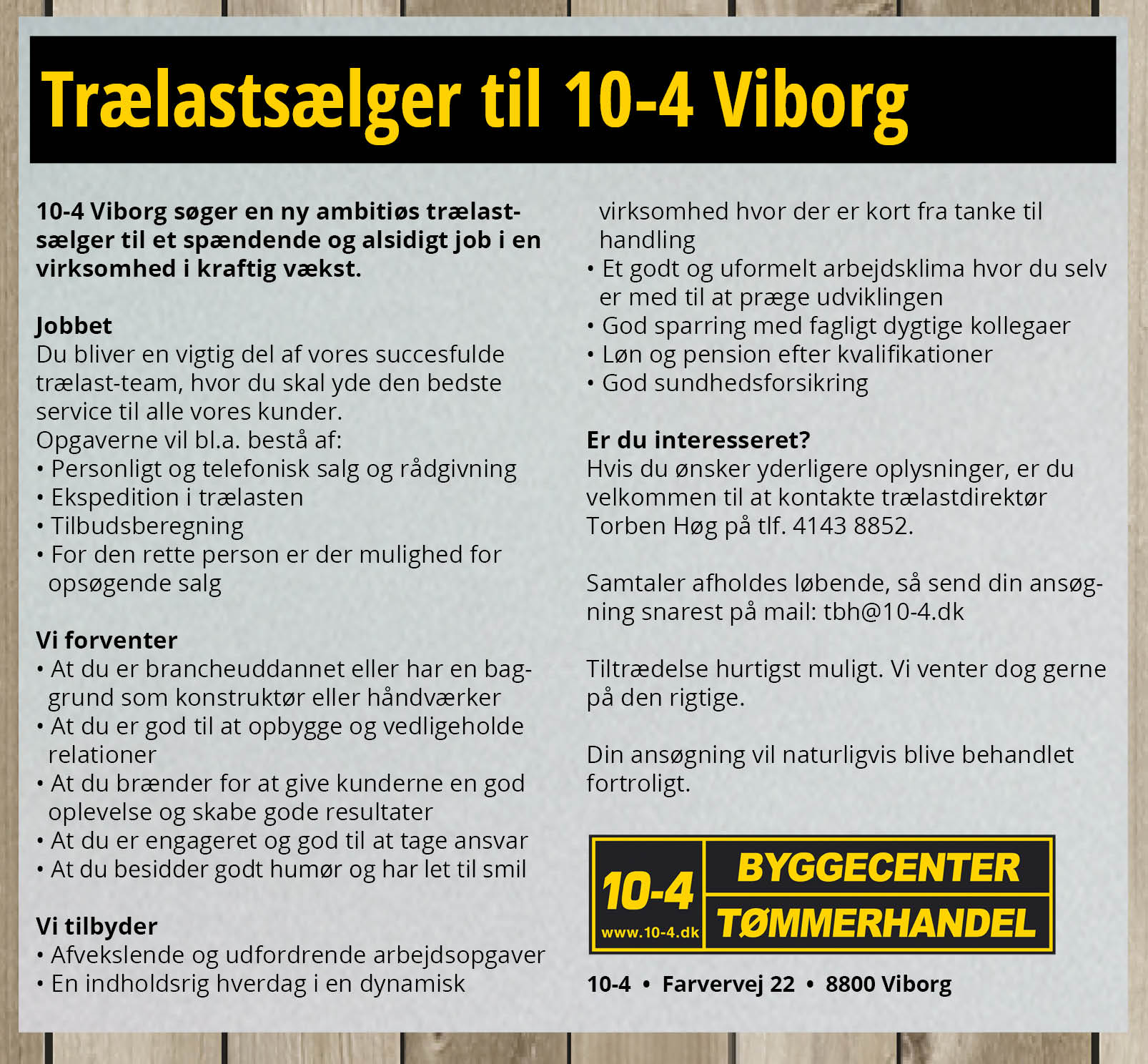 Job hos 10-4 Byggecenter og Tømmerhandel